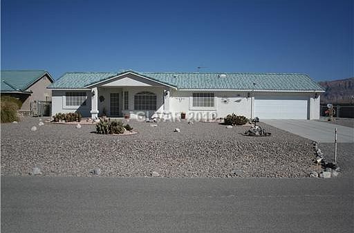 Ready to move in to. Clean and neat, one owner home. Desert landscaping. Kitchen has island with a nook. Large master bedroom with walk in closet and master bath with skylight and jetted tub and seperate shower. Pot shelves and vaulted ceiling in living area. Big 634 square foot garage. Covered patio at rear of house with views of Mt. Charleston. RV hook up with, water sewer and 30 amp electricity.