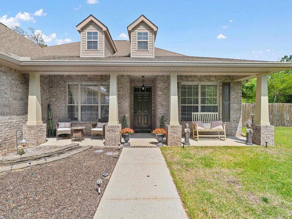 Meticulous 3/2.5 bath 2337 sq ft home with pool located in the highly sought-after Cottonwood gated community. As you drive up to this beautiful well-maintained home notice the long driveway with a 3-car garage equipped with a 220-volt outlet. This home offers plenty of parking and incredible landscaping. The covered front porch is very spacious, inviting, and a great place to enjoy your morning coffee. Through the front door, there is an office or bonus room that has beautiful natural light shining in and a formal dining area with a gorgeous new chandelier right off the kitchen that is perfect for family dinners. The entire home has a fresh coat of paint and stunning luxury vinyl plank floors. In the huge living room, you have high ceilings and an open concept that is great for entertaining. The kitchen has an abundance of cabinets with granite countertops and stainless-steel appliances. Conveniently located near the kitchen is a half bath for guests. The large master suite has nice trey ceilings and an elegant master bath with a garden tub and separate shower. There is a double vanity and a huge walk-in closet. Make your way to the other side of the home to the two additional bedrooms and second full guest bath, the bedrooms are very roomy and have plenty of closet space. Head out back to the covered patio that looks out to the pool that has two fountains, a new liner, and great privacy. There is plenty of space to relax, play and appreciate your own oasis. You have a yard building for all of your lawn equipment or storage needs. Don't miss out on this magnificent home. Call me today for a tour.