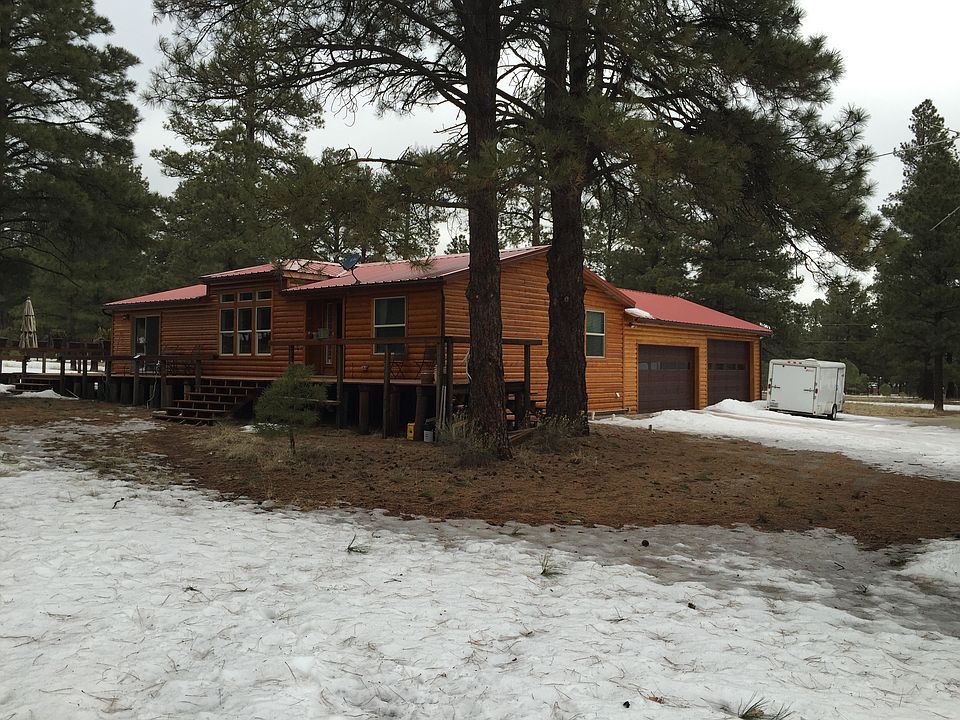 . New Home built in 2013! Beautiful 5.3 Ponderosa Pine acres bordering Picture Canyon Preserve. Doney Park Water, electric and propane. Quiet and Private and loaded with PRIME Mature Ponderosa Pines. This property includes a Horse Barn, 43ft. x 43ft. with a 16' breezeway. Three open stalls and 3 enclosed stalls. Huge workshop with compressor. Also includes a 1000 gallon septic system. Barn has installed power and lighting,shower and toilet. RV hookup. Metal roof, pine log siding, wrap around deck is more than 1250 sq feet, garden tub, huge master suite. 928-699-1746 call for showing,