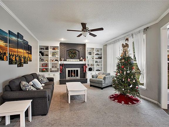 - Features: Built-in Features, Carpet, Ceiling Fan(s), Fireplace