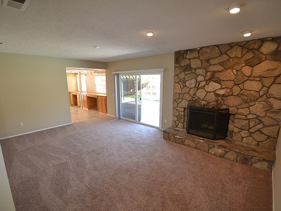 5640 Peacock Ln Designer touches abound in this incredible property. Enjoy more than 2,100 square feet of incredible living space in this one-story home that features 4 bedrooms and 2 baths. This home has great curb appeal thanks to the beautiful landscaping with fountain out front. The interior includes built-ins, tile flooring and carpeting with a detailed stone fireplace adding great character! The kitchen has phenomenal counters, beautiful capacious cabinets, dual stainless steel sinks, an array of modern appliances and an island. Sliding glass doors off the living room lead to a spacious backyard with a POOL and patio for nice playtime for kids, evening and weekend barbecues and pool parties. Bedrooms are comfortable and cozy with fresh carpet, ample storage space and nice windows. The master bedroom offers a huge closet and nice bathroom with his and her sinks. Enjoy laundry space and attached 2 car garage. Open and airy floor plan with upgraded lighting feature throughout! Don't miss this one!