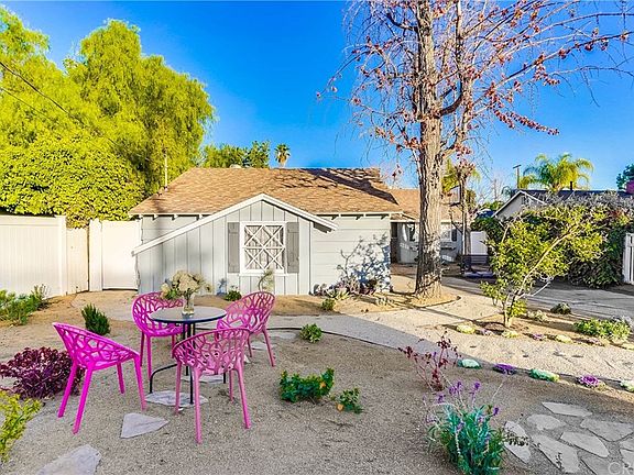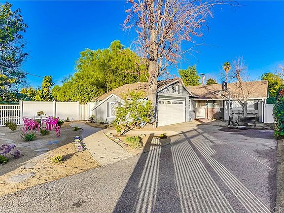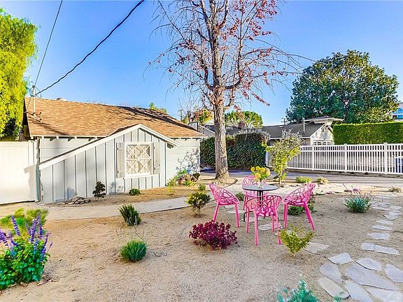 This California Bungalow is oozing with charm and the best combination of then and now! Private and gated with a lovely white vinyl craftsman style enclosure. Custom designed drought tolerant landscaping lead up to this fantastic home. This home has character throughout with all of its countless special touches. Enter through the front door and be wowed by the great open floor plan of all the main living spaces. Gorgeous solid oak floors sweep through the home. The kitchen has been updated with a brand new double oven, brand new 5 burner cook top, stainless steel appliances, solid wood kitchen cabinets painted white, black hardware and hinges, built in marble work surface for all the bakers and built in butcher block surface for all the chefs! Dining room flows straight into the great room, with a stunning wood burning fireplace, and custom built bookcases. Sliding doors lead straight onto a custom built patio with pergola that makes you want to spend as much time outdoors as possible either alone relaxing with a cup of coffee, or entertaining a group of friends!! Beautiful new landscaping and grass with fruit trees and awesome patio in this extremely private backyard complete this 4 bedroom 2.5 bathroom home! Master suite with vaulted ceiling, large walk-in closet and on-suite bathroom, 3 additional bedrooms and 1.5 bathrooms are perfectly laid out. Set in a lovely pocket of Valley Village with great restaurants, super markets, walking distance to parks and so much more!