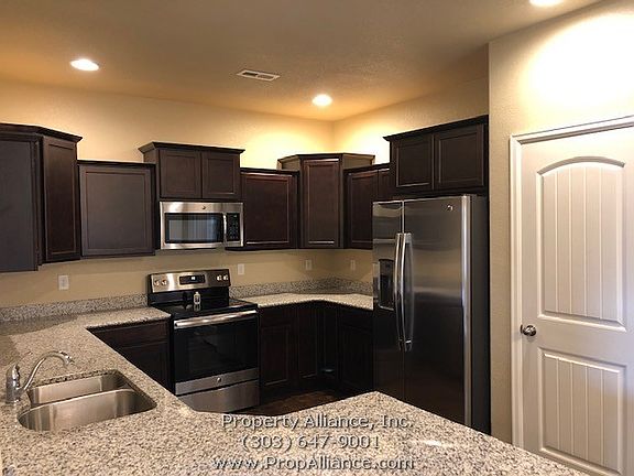 SCHEDULE A SHOWING ONLINE AT: showmojo.com/lh/7a524c501f Nearly BRAND NEW corner end-unit townhome in centrally located Dublin Terrace! Enter the home and notice the beautiful engineered wood flooring throughout the main level. Spacious living room with a large front window overlooking open space and the stunning Colorado mountains! The living area flows into the gourmet kitchen with granite countertops, stacked cabinets, stainless steel appliances and bar seating. Adjacent to the kitchen is a roomy dining area to enjoy meals with family and friends. A large powder room and a storage closet complete the main level. The upper level features a huge master bedroom with plenty of space for a sitting area or exercise space. The attached en-suite has a walk-in shower with a built-in bench, double vanities, private commode, and a linen closet to stay organized. The 2 additional bedrooms on this level both have walk-in closets and large windows showcasing the front range! The upper level laundry room is so convenient and has a window making it bright and airy. Enjoy the beautiful Colorado outdoors on your private patio that overlooks open space and has breathtaking mountain views! The oversized two-car with epoxy floor is attached garage is even with the main level and offers plenty of additional storage space. This townhome is conveniently located to the Powers corridor and has tons of shops and restaurants to enjoy! Renters Insurance required Pets negotiable with additional fee and deposit, 1 dog <35 pounds or 1 cat 2 Car Garage Central A/C & Heat Granite Countertops Laundry Hook Ups Like New Carpet Mountain Views Private & Quiet Stainless Steel Refrigerator Trash Included Wood Floors