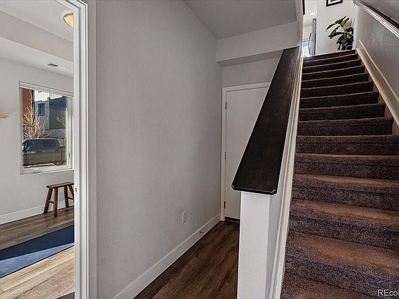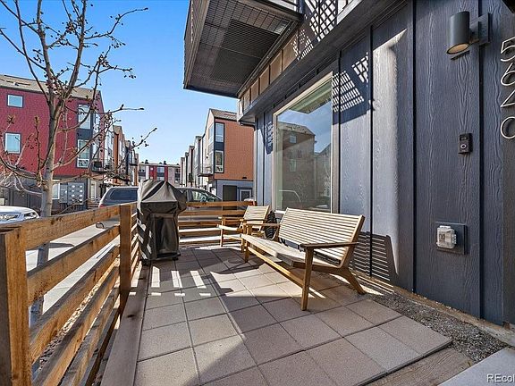 Rare Kings Garden End Unit. Urban Contemporary design. Flooded with natural light from large windows. Main floor open concept layout from kitchen to living room, with balcony offering additional outdoor space. Contemporary finishes include Quartz counter tops, stainless steel appliances and laminate wood flooring. Refrigerator, washer and dryer included. Fenced front porch area is finished with pavers, which accommodates seating and grill. Nest Thermostat and Ring Doorbell. Attached 1 car garage. Blocks to Light Rail, with close proximity to Downtown Denver and Golden. Close to Sloan's Lake and walking trails. Metro District in lieu of HOA, covers common area maintenance. Owner pays roof, exterior building, insurance, water, trash, electricity and gas.