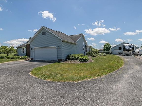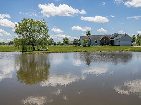 Are you looking for a home in the country with a lovely tranquil setting & an outbuilding for multiple uses? Then look no further! This stunning open-concept 3 bedroom, 3 bath Ranch sits on 3+ scenic acres w/ a stocked pond & large 35x35 heated multipurpose garage w/ walk-up loft. Inside this must see home, you are greeted by the inviting foyer, that leads you to the bright vaulted living room w/ a cozy gas burning fireplace & gleaming hardwood floors. The remodeled eat-in kitchen boasts ample cabinetry, gorgeous granite countertops, included stainless steel appliances, two breakfast bars, pendant lights, backsplash & dining area. You will enjoy spending time in the vaulted sunroom w/ walls of windows, & door leading out to the large back deck, fenced in backyard & convenient access to the detached multi-use garage. Back inside, are 3 comfortable bedrooms, 3 full bathrooms, office and laundry room. The master suite provides a walk-in closet & en-suite bath w/ vanity & shower. The full basement offers multiple recreational areas and ample storage! One year home warranty included. Updates include; Windows, complete kitchen remodel including new cabinets, 2ft x 2ft tile and granite counters; all new flooring throughout including carpeting, wood floors & upgraded fireplace. This versatile, move-in ready beauty has so much to offer! Call today for a private viewing!