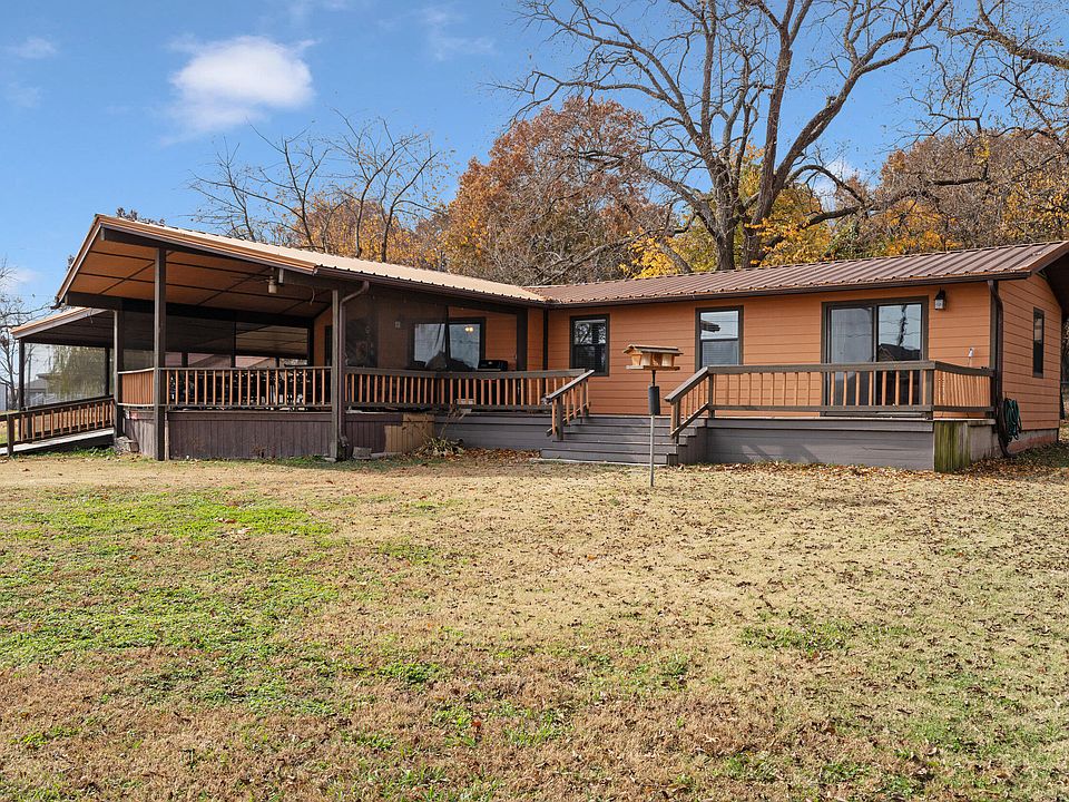Grand lake viewsStorage buildingSpacious lakeside deckOpen-concept layoutAttached carportHeavy gauge metal roof