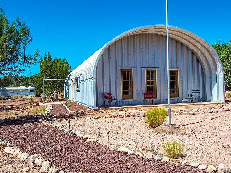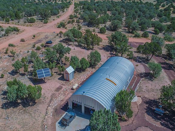 SALE PENDING: Make your great escape to the mountains of Arizona, living off-grid in a Quonset hut with access, privacy and a 2 car attached garage. No HOA. Low Maintenance home and landscaping create more free time for you to enjoy the area with the many places to ride horses, ATV, and hike all around. Fully fenced 2 acres, out buildings, all designed for the look and feel of a home with the sturdiness and attributes only offered by this style of home. Bring your horses and other critters. Horse Corral and barn/hay barn are on site. Good dirt roads to the property. Directions: From Seligman, AZ, Take Route 66 to Ft Rock Road and turn left. Follow Ft Rock to Via De Oro and turn right. Right at Potrero Parkway . Property is on the corner of Potrero Parkway and Shadow Mountain Parkway