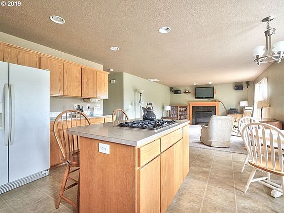 The spacious kitchen features a nook, island, gas cook top and ample cabinet space. Gas fireplace in the cozy family room just of the kitchen. Sliding doors leading to the patio that is shaded by trees. Five bedrooms including master suite with jetted tub & vaulted ceiling. Garden area, green house plus apple, pear and plumb trees. Large level yard with softball/baseball field. Three car garage & metal storage shed and room for a shop.
