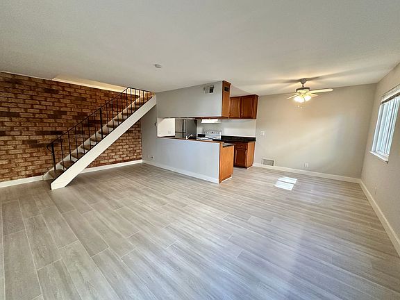 Beautifully situated 2 bedroom 1 bathroom Townhouse Style 2 story unit with private yard Available NOW Downstairs has Gallery style kitchen with Granite Countertops and pantry with an eat in dining area. Downstairs and bedrooms have wood laminate flooring throughout. Primary bedroom with custom built in vanity and spacious closet. Unit comes with 2 reserved parking spaces, 1 shared garage space and 1 tandem driveway parking spot. Private yard located directly next to unit with gated privacy. Requirements to Qualify: 1. All residents aged 18 and over need to submit an application for the unit. 2. All applicants must have at minimum a 650 Credit Score. 3. All applicants must make 2.5 times the rent gross monthly, combined. 4. All applicants must have no negative landlord references or evictions on your credit report.