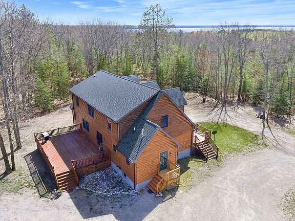 Gorgeous log home sits on wildlife filled 40 acres of hardwoods. Three levels of living space appeal to every type of buyer. Retired folks and empty nesters will love the main floor that has the master, laundry, living room with fireplace, den, kitchen and dining. Have a family or guests? The upper level has 2 bedrooms, full bath and sitting area. Need room for hobbies, music or sporting goods? The lower level walkout offers endless opportunities! The 40 X 60 pole barn has efficiency apartment and allows you to store the boats, snowmobiles, hunting and fishing equipment. Close to dining, UAW Golf Course, Black Lake boat launch and the trails.Preapproved buyers or cash only.