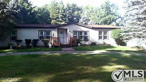 This Manufactured home is on almost 1.5 acres and has 3 Bedrooms all with walk in closets. 2 Full Baths, Great Room with Fireplace .Replacement Windows, Garden Tub and separate shower off Master Bedroom. full partially finished Basement with RR and wood burner also is a Walk-out and 2 car garage. Jacuzzi and 20x40 Inground pool with new liner, pool house and large covered deck. 20x40 Pole barn with 220 Elec. and wood burner. New siding, New roof, full basement with extra room. Harper Creek Schools.