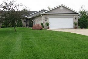 Luxury duplex living on over two-thirds acre lot near airport yet tucked back in its own private and secure subdivision. Great room concept with cathedral ceiling, corner gas fireplace, and sink island in kitchen. Luxurious master bedroom and master bath with dual vanities. R-40 ceiling insulation, R-13 in exterior walls. High efficiency heating and cooling. Water heater is an on-demand system. Lawn irrigation system. Sun Porch is finished but is not heated or cooled. Deck is accessed by ramp and overlooks spacious back yard. Much more! See attached document for further amenities. Approximately $233.84 total annual fees, includes street lights, front gates, mowing of common areas, snow removal of streets only. Residents are responsible for for their own lawns and snow removal of driveway and sidewalk.