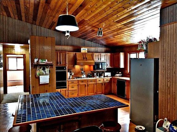 MOHAWK ROAD HOME - Perfect family home in a great location! Spacious 3,500-sq. ft., split-level 4 BR, 3 BA home on 2.16 acres. Interior has beautiful tongue-and-groove cedar vaulted ceilings throughout, wood paneling and oak parquet floors in great room. Kitchen has birch cabinets with a cute breakfast island with a unique tile countertop. Includes range top, oven, dishwasher and built-in range hood. Bedrooms are carpeted, baths are tiled. Garage is 22x24 2-car tuck-under. Windows inside open for great cross breezes to enjoy warm summer days. Exterior is tongue-and-groove stained pine. Second-level deck has stairs leading to below patio and room for a volleyball court. Lower level is finished and includes a bedroom and bath, and large utility room.