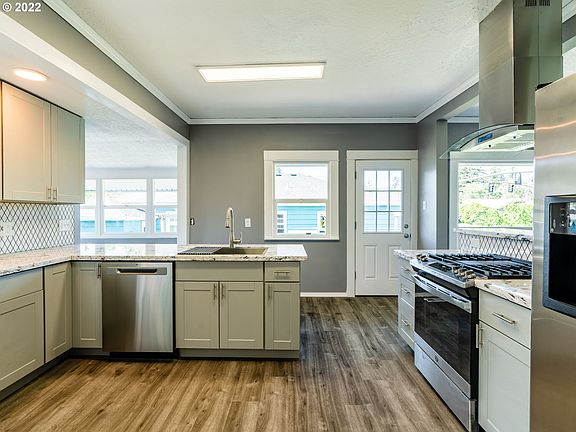 Beautifully redone home in an awesome Southeast Portland location. This home has been completely remodeled with all new everything including laminate flooring, paint, cabinets, granite countertops, stainless kitchen sink with disposal, new roof, siding, you name it! You will love the finished basement with two bedrooms and a bathroom. Enjoy a fully fenced yard with a detached 2 car garage and a new back deck. Home has new windows throughout, 100% move in ready!