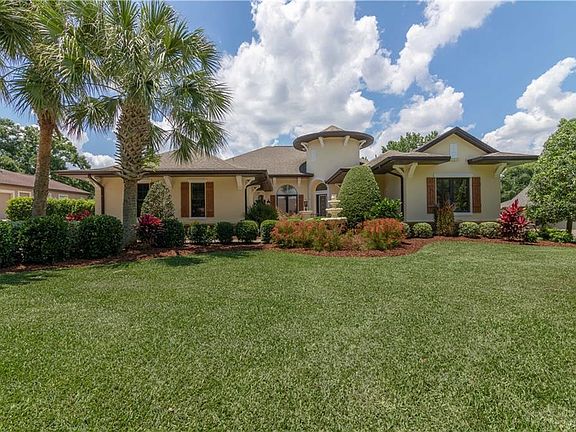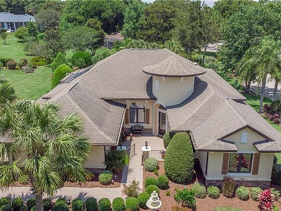 The current owners of this truly IMMACULATE 3 bedroom PLUS OFFICE with 2.5 bathrooms heated pool/hot tub home w/ an over sized 2 car garage & golf cart garage was originally built, designed & lived in by an award winning chef that published cookbooks named Jewel Camarrano. The kitchen has features you'll love from the top of the line Wolf oven, a cooktop, an island, a butler pantry/dry bar, a walk in pantry, stacked stone accent wall, water pot filler & so much more. As you drive up you immediately notice the attention to detail in the pristine landscaping, the gated entry to the gated courtyard entry & the gorgeous lead glass front door. As you enter the turret foyer you're greeted by a gorgeous one of a kind chandelier hanging from a high ceiling. Walk further &you're in the wide open great room with views of the gourmet kitchen and the pool. The coffered ceilings in the great room are gorgeous med brown wood. A little further and you'll be going out the sliding glass doors to the solar heated pool w/ propane heated hot tub all screened in adorned by luxuriously landscaped privacy w/ a view of the championship golf course. The master bedroom has it's own en suite with gorgeous solid surface counters and matching solid surface shower with no grout. The master suite has 2 closets, one of which is 5.5 ft wide by 14 ft long custom closet..literally the size of a small bedroom! The big attraction is the openness to the great room, office and pool/hot tub/ lanai area. Watch the walk through video!