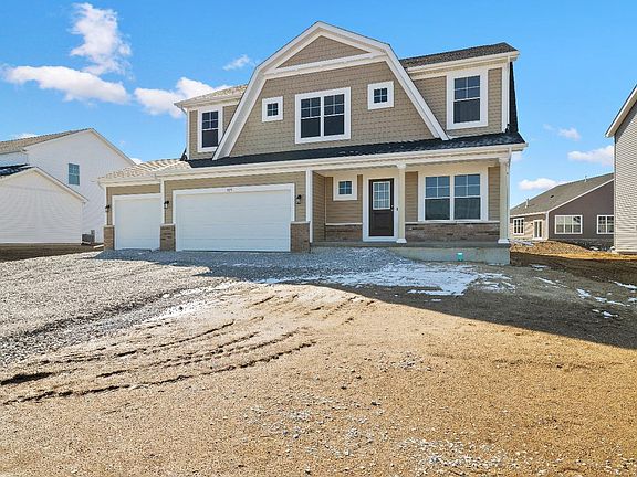 Presenting the Olympia! This open concept floor plan features 4 bedrooms, 2.5 baths, a main floor flex room that can serve as office, den or dining room, and a second floor loft. The kitchen showcases gray 42 maple soft close cabinets, granite countertops, stainless appliances and an island for entertaining. The Owner's Suite has a beautiful tiled shower and spacious walk in closet. Convenient second floor laundry. Relax inside by your contemporary fireplace or outside on your covered patio. Upgraded flooring and lighting. 3 car garage. Front yard sod and plant package. The Olymoia comes with a 10 year structural warranty, Low E energy windows and the industries best customer care program.
