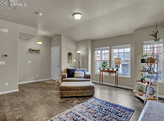 Show stopping immaculate townhome located in the beautiful Dublin Terrace townhome complex. Built in 2016, but feels like brand new! Fantastic location in the complex that fronts to green space with killer views of Pikes Peak. This two-story has a great feel with open concept living on the main floor. Amazing kitchen with huge island, stainless steel appliances, gas range, luxury vinyl plank flooring, granite counters, upgraded cabinetry, and pantry.
