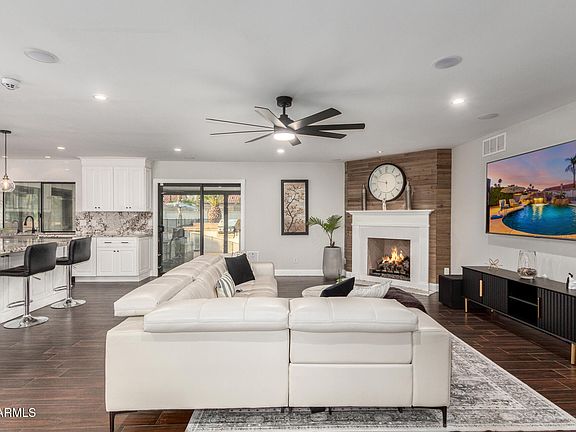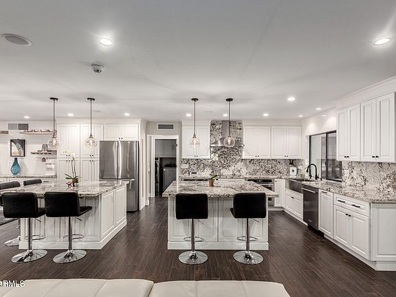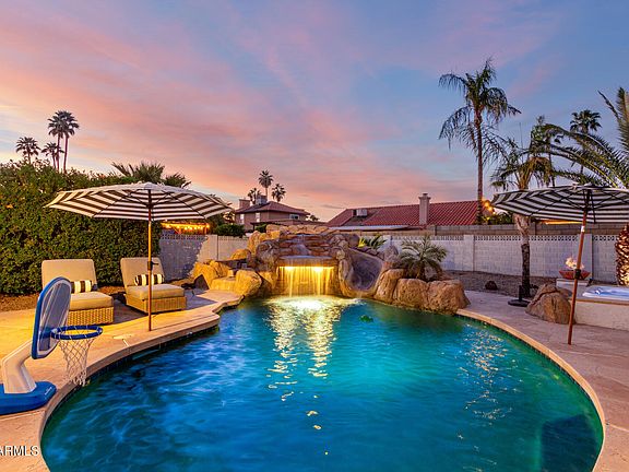 Redesigned contemporary modern home located in the vibrant heart of Scottsdale Kierland area. Designed with a split floor plan, this home possesses an expansive backyard and open-concept living spaces perfect for hosting gatherings. A short distance away, you'll find premier dining, shopping, and entertainment venues, including the chic Scottsdale Quarter and the upscale Kierland Commons. The kitchen is a culinary masterpiece, featuring two islands, dual ovens, a stainless steel hood, wine bar, new dishwasher, farmhouse sink, top-of-the-line stainless steel appliances, and stunning granite countertops. Step outside to your private oasis, complete with a dazzling pool, rock water slide, built-in grotto, BBQ grill, 100 sq ft shed (included), bar, spa, and lush grassy areas for relaxation an d recreation. The front of the home is enhanced with fresh landscaping and stylish pavers, adding to its alluring curb appeal. Recent upgrades include a new hot water heater, new roof, exterior renovations with a 10-year paint warranty, and a remodeled second bathroom. This home seamlessly combines modern style with practical functionality, and even offers ample space to park your RV! Be sure to explore the Local Area Guide PDF document to uncover nearby dining, shopping, and entertainment options that make this location ideal for those seeking an active and sophisticated lifestyle.