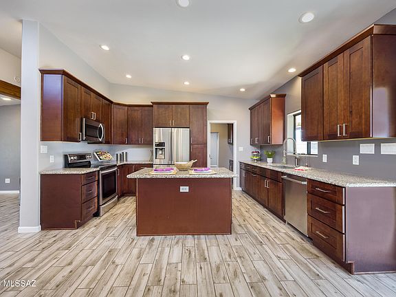 Range priced from $399,900 to $424,900. You'll love this tastefully updated central red brick charmer! Close to shopping, restaurants and TMC. Enjoy hosting in an entertainers kitchen with, granite counters, soft close cabs and a wide kitchen island.Well appointed primary suite includes walk -in shower, designer closet & dual vanities. There's even a bathtub for two!Spacious and gracious, relax in front of your stacked stone fireplace, perfect for cozy evenings at home. The split bedroom floorplan makes this home ideal for multiple adults or a family. Beautiful backyard, covered patio & superior artificial turf. Easy care/ low water usage shrubs. Additional amenities include: Newer dual pane windows, quality flooring and fresh paint. This home is a winner!