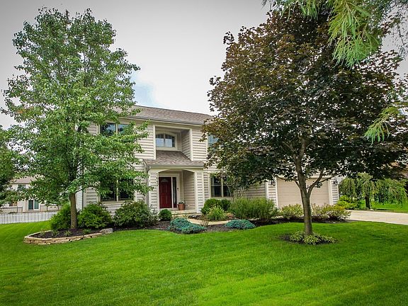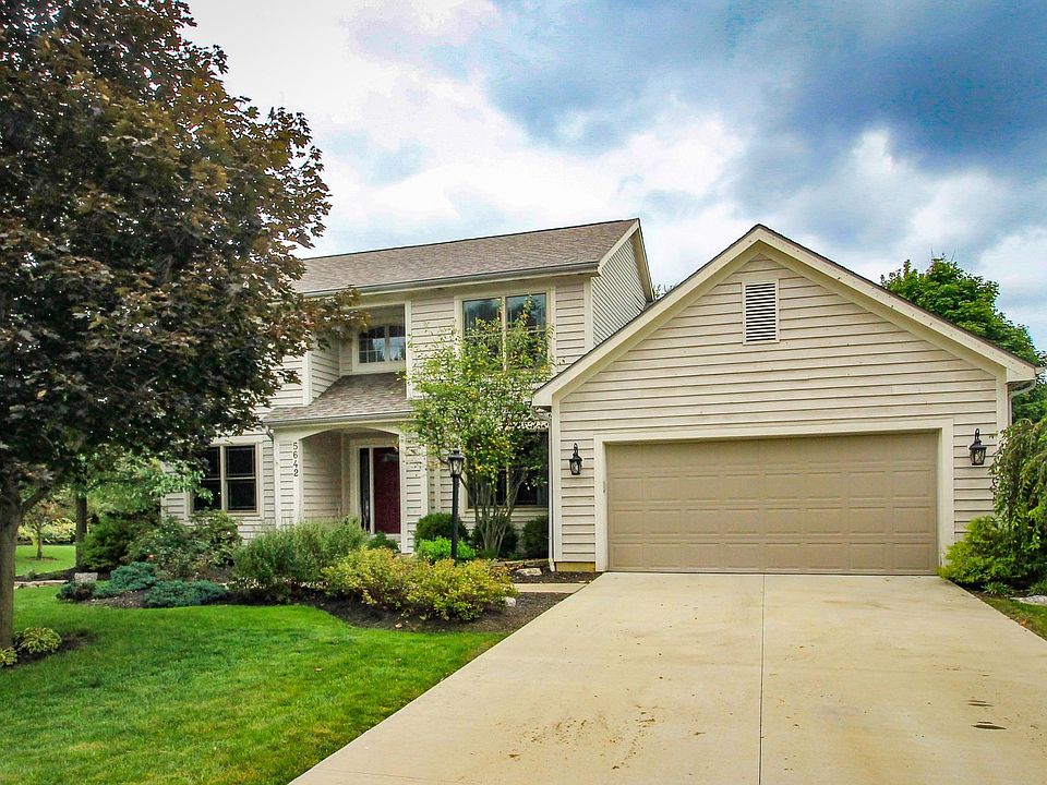 Soft contemporary home in Dublin's Brighton Park. 2 story foyer and great room. First floor master bedroom suite. Den or office on 1st floor too. Updated kitchen with granite, tile floors, newer appliances. Great room with door to patio, and fireplace that opens through to the breakfast room. 3 more bedrooms and full bath upstairs. Large first floor laundry. Finished lower level with bar for additional living and entertaining. Stamped patio perfect for outdoor activities. Cul-de-sac street in convenient location.