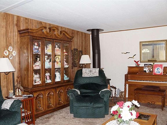 Very nice manufactured home in the pines with paved access and public water system at less than $20 per month for water. The home is in very good condition, and has been well taken care. This 3 bedroom 2 bath home is in move in condition. There is a carport for 1 car, and several storage buildings. Located near the small town of Bly, with gas station, and small stores. A cafe nearby also. This is a must see to get away from the big cities. Reasonable and affordable home!
