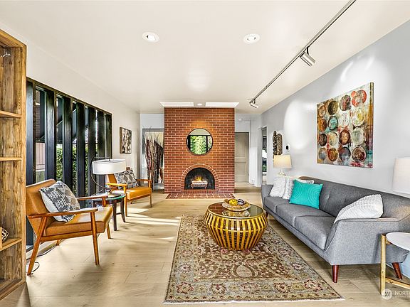 Welcome to this private garden Oasis PNW Mid-Century Modern with a walk score of 85! A truly special home that has been tastefully updated with a blend of contemporary elegance while retaining its charming mid-century aesthetics, offering a warm and inviting space to call home. The large custom windows and skylights expand the living space out with an enormous covered deck in front & private courtyard out back. With modern clean interiors, and a newly renovated kitchen this home embodies a blend of comfort & functionality. Don't miss the huge well-built detached studio with tons of income potential, it has its own kitchenette, bathroom & 2 giant flex spaces. With a sense of seclusion & the city at your doorstep, this home is a must see!