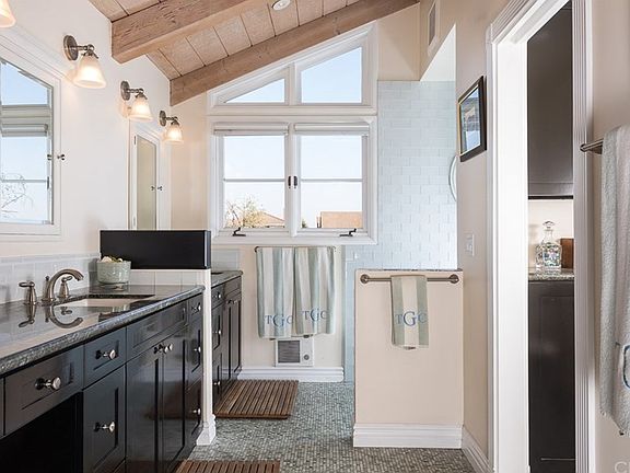 Surround yourself with natural light and windows in this charming open floorpan home substantially remodeled in 2013. Enjoy al fresco dining on the entry courtyard deck. Open and bright floor plan with gourmet kitchen complete with beam ceilings, granite countertops, stainless steel appliances, island workspace, 2 pantries, fireplace with sitting area and a peek-a-boo view of Catalina from the kitchen sink. Vaulted ceilings and wainscot paneling complement the living room & dining room which look out over the large pool/spa yard complete with covered patio & bocce ball court framed by mature trees. The inviting family room includes a large entertainment bar with built-in workspace. The spacious master suite boasts city light and Catalina Views, more open beam ceilings, a walk-in closet with custom organizers, a large bath with heated tile floors, walk in tile shower with bench, multi nozzle sprays, dual sinks, a sit down vanity area, linen closet, and hideaway jewelry cabinet. Large bonus room upstairs is perfect for an office or a playroom. Unique downstairs "mud room" complete with custom cabinetry. Laundry room with cabinets and wash sink. Three car garage with new custom doors has a large upstairs loft with walk up stairs and abundant storage. Charming french windows with e-glass for energy efficiency. 3 nest controlled heating and cooling zones. Don't miss this unique opportunity to live in the exclusive gated community of Crest de Ville.
