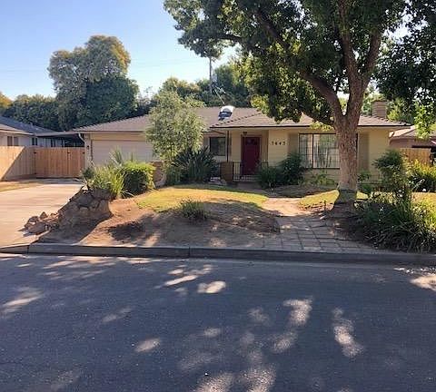 Honey Stop the Car ! This Home has Curb Appeal! Great property in tree shaded neighborhood not too far from Fresno State. Enjoy your evenings on the large front patio with seating. There is a very large addition over 500 sq ft bonus room with an adjacent side room that has a divider wall and large closets. the adjacent rooms could be used as 2 additional bedrooms ,craft area,offices,in-law or (this was pre existing when seller purchased and not included in square footage, un-permitted, buyer and their agents to verify all re these rooms if important. Newer roof, newer Fences/gates in most areas and newer laminate floors and carpet. Does need some updating to kitchen and baths. Move in ready although Saavy buyers can gain their own equity doing updates at your leisure.Extra large side covered area could be parking for boat or Wide driveway w extra space for extra parking, RV newer fencing. Large wood deck in rear yard for all your fun events. Too much to list, must see and seller will include a transferrable home warranty as well!