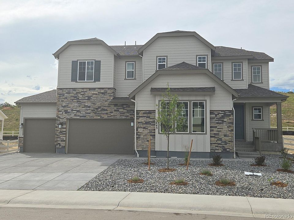 MLS#5729881 Ready Now! Keystone II in Hillside at Crystal Valley! Indulge in the distinctive design features that make the Keystone II a home to remember including a study with glass walls, and covered outdoor living. The open concept floorplan showcases traditional features like a statement foyer and formal dining room while offering the contemporary feel and flex spaces the whole household will enjoy. On the first level, the grand great room impresses with statement-making vaulted ceilings, a modern fireplace, and seamlessly connects to the large kitchen with eat-in island and walk-in pantry. The thoughtfully designed second story accommodates the entire household with a luxurious primary suite and two additional bedrooms. Upgraded finishes throughout! Design features include: Concerto Distinct Canvas Collection, 2 tone paint, upgraded railings, raised vanities throughout, laundry cabinets and sink. Quartz counter tops. Luxury vinyl floors. Structural options include: Elevation B Cottage, 4 car garage, loft, owners bath configuration 5, study 2 with glass wall, covered patio #2, 8 foot doors second level, 8 foot by 12 foot center meet sliding glass door, modern 42" fireplace, finished basement with bedroom and full bath.