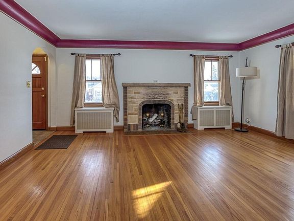 Charming 30's stucco and brick Tudor with hardwood floors, coved ceilings, arches, LR fireplace, master suite up with fireplace, dining room with coved wood Dutch ceiling. Eat-in kitchen includes stainless appliances with new refrigerator & range in 2020. Fenced backyard with hot tub, deck, pergola and gas line for grill. Attached garage. Sunroom/mudroom has new windows. House roof replaced in 2013, garage roof replaced in 2007.