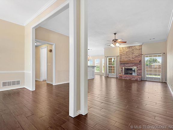Beautiful One-Level Brick Ranch on Quiet Cul-de-sac! 3 extra-large bedrooms with walk-in closets. Master bedroom is split from secondary bedrooms with jetted tub, closet toilet area, shower, double vanities, linen cabinet, 2 closets. Secondary bedrooms share a hall bathroom. Hallway has 2 closets for additional storage. Abundance of natural light in the white kitchen with granite transformation counter tops, stainless steel appliances, walk-in pantry, cabinet pantry, room for bar stools, breakfast nook and access to covered patio. Great Room has gas start wood burning fireplace. Formal dining could serve has an office or formal sitting area. Nice high ceilings with ceramic flooring through main areas and carpet in bedrooms. Spacious utility room with garage access, room for a freezer, half bath and storage. Over-sized garage with LED lighting recently added plus floored attic and driveway with 3rd car parking. ADT wireless security. Backyard offers privacy fence, covered patio, 2 sheds-one with electric, raised garden bed with timed in-ground watering system. Seller offering an Old Republic $595 HW. Desirable Park Hill location and close to Sooner Park, Adams Golf Course and Schools!