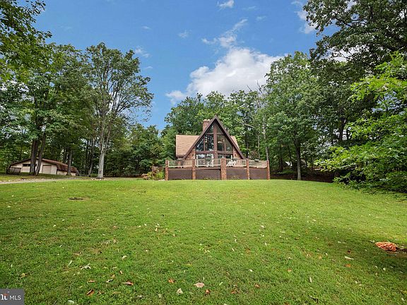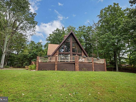 Just listed! Single family, A-frame, all-brick, 3 bedroom, 2 full bath home nestled on a scenic road just outside Frederick city limits. This home sits on a beautiful 1 acre lot surrounded by trees and nature. Floor to ceiling windows in the living room allow plentiful natural light and views accompanied by a wood burning fireplace. Sliding glass doors make way to a wrap-around deck off the living room which provides a serene experience. Large bedrooms with ample closet space, plentiful windows and high ceilings throughout the house. Bonus loft area on second level provides space for second living room or recreation space. Unfinished walk-up basement. Oversized detached garage for your car and extra storage. Conveniently located close to commuter routes of I270, I70, and Rt 15, any shopping or restaurant experience you could want, as well as charming historic downtown Frederick! *One disclaimer - there is no central A/C*. No HOA. Home being sold in As-Is condition. This private nature oasis is waiting for you to make it your own!