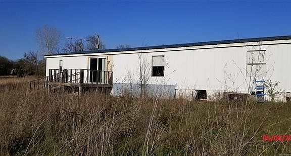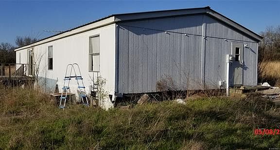 Doublewide on 6.8 acres with siding and metal roof. Front porch, large living room with vaulted ceilings. Master suite has walk-in closet and private bath. Kitchen island. Trees and pasture.