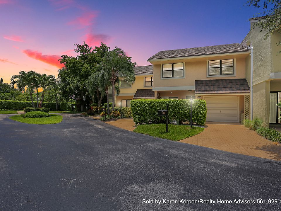 WATCH THE SLIDESHOW. This 3 bedroom Brook Haven townhouse is situated on a small cul de sac in a tranquil enclave of just 25 fee simple townhomes. With easy access to the community pool & clubhouse, it features a fenced and covered courtyard, a beautiful Chicago brick paver patio, and a covered balcony off the large 2nd floor master bedroom. Inside you have spectacular vaulted ceilings with wood trim, transom windows, and a big open floorplan that is light & bright. The living room features a fireplace, new porcelain tile flooring, and new 5-inch tall baseboards. The breakfast area, kitchen and dining room all feature marble flooring. The AC was replaced in 2018, the garage door in 2017, and there is new upgraded carpeting on the entire 2nd floor (except for the hardwood floors in the Master). This truly is a wonderful community in a wonderful location.