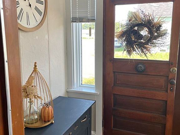 Cottage Style home has 2 to 3 bedroom, one and a half baths. The seller has recently completed many updates including electric, plumbing, some new roofing and cosmetic updates. The home has a front entrance porch that leads to the dining and living room. The spacious eat-in kitchen has a large island and half bath. The back enclosed porch serves as a great mudroom with a walk-in closet and first floor laundry all conveniently located off of the kitchen. Wood floors on both levels with spacious and bright bedrooms with full bath. Property offers a large double corner lot, raspberry bushes and a garage with attached workshop. This home is close proximity to US 41, trails, schools, hospital and downtown Calumet and Laurium.