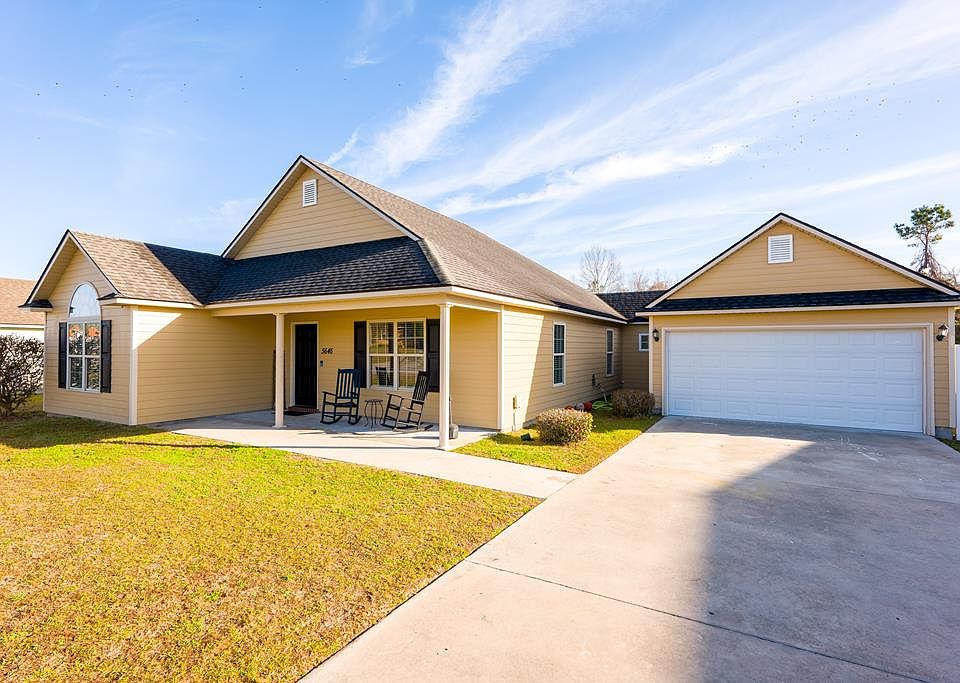 Beautifully remolded home in Moulton Branch Estates offers so much ! Great curb appeal and you will love interior features. Step into the large great room which is open to dining room and kitchen. Beautiful stained wood in the trey ceiling. Painted with soft grey throughout. NO CARPET! Kitchen offers top of line appliances, granite countertops and new tile back splash. Master suite has a very spacious walk in closet, soaking tub and separate shower. Laundry room is conveniently next door. Guest rooms/ office are located near the front door with a hall bathroom. Breezeway to the garage has been newly enclosed and offers additional storage space. New PVC fence offers privacy in this awesome backyard that backs up to the woods. A perfect spot to entertain around the fire or BBQ. Located less than 15 to SGMC and a short drive to MAFB!