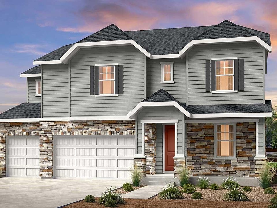 MLS#6335151 REPRESENTATIVE PHOTOS ADDED. May Completion! The Vail's design has undergone extensive enhancements, rendering this floor plan as truly remarkable and a best-seller. With a focus on maximizing livability, this home offers bonus rooms and options tailored to meet your needs. Upon entering through the foyer, you'll encounter a study leading into a dramatic, two-story great room, optionally equipped with a fireplace. Adjacent to the dining area lies a kid’s playroom, which can be converted into a hearth room featuring a double-sided fireplace, or alternatively, into a fifth bedroom with a full bath. Ample storage space is provided by the entry and pantry, while the spacious kitchen island facilitates seamless entertaining. Upstairs, discover three secondary bedrooms, two full baths, and a convenient laundry room. Additionally, there's an oversized storage closet and a luxurious primary suite boasting dual closets and sinks, with the option of a tray ceiling to elevate the opulence of this space! Structural options include: Hearth room with fireplace, full unfinished basement, modern fireplace in great room, owner's bath configuration 5 8' interior doors on second floor, 9' full unfinished, 14 seer A/C, outdoor covered living, and gas line rough -in.
