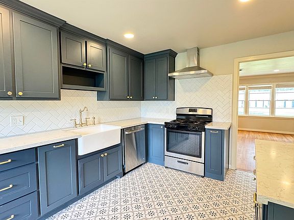 Step into a beautifully restored home featuring refinished original oak hardwood floors that radiate warmth. The modern kitchen shines with Silestone countertops, charming farmhouse sink, updated stainless steel appliances, including gas range, new cabinetry, and stylish hardware. The spacious open living area is enhanced by new recessed lighting. The foyer and laundry room feature unique brick flooring, adding character. Bathrooms are thoughtfully updated with a blend of contemporary style and timeless appeal. This home combines classic charm with modern comforts, ready to become your dream home.
