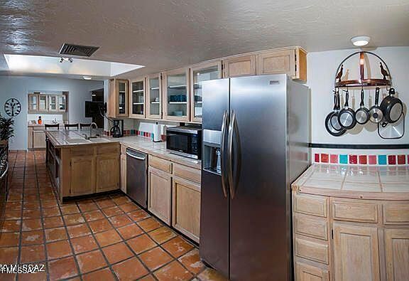 Make yourself comfortable in this spacious casa featuring Mexican clay tiles, Southwest Contemporary decor and 7 skylights that flood the interior with natural light. This bright and airy townhouse has all the comforts of home along with all the luxuries of an upscale resort! Take a scenic stroll over to the clubhouse to spend the afternoon relaxing by the shared pool and jacuzzi just outside your door that is surrounded by picturesque mountain vistas. Keep up with your fitness goals in the workout room or with a friendly game of tennis. Head home for a leisurely evening in the living room, outfitted with vaulted ceilings. Catalina Foothills school district.
