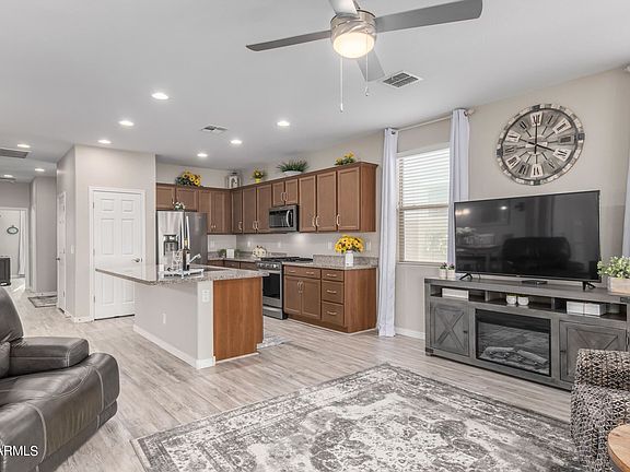 Prestine 2 bedroom, 2 bath single level home in Eastmark's Encore 55+ neighborhood within walking distance of the award winning clubhouse, The Encore Club. Gourmet kitchen with granite countertops, upgraded cabinets, gas range with built-in microwave and island with stainless steel farmhouse sink. Owners suite boasts oversized shower with glass door, spacious walk-in closet and double sinks. Second bedroom with picturesque window. Easy to maintain backyard with ext\ended pavered covered patio. 2 car garage with whole house filtration system. Inside laundry with room for storage. Clubhouse features include: Fitness Center, Pickleball Courts, Tennis Courts, Billiards, Locker Rooms, Event Lawn, Arts & Crafts, Bocce Courts, Cafe, Resort-Style Outdoor Pool And more...