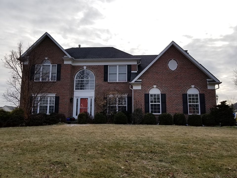 This gorgeous four bedroom, two full and one half bathroom colonial is situated on a 0.42 acre lot in the peaceful Estates at Timberly Farms community. There are no through streets in the neighborhood so you can enjoy your easy access to major routes and shopping without worrying about being overwhelmed by traffic. The home itself features a front brick fa~ade and new HardiPlank siding finishing the exterior. Upon entering, a dramatic two story foyer complete with turned staircase and stunning hardwood floors beckons you in. To the left, a formal living room accented by crown molding, chair rail and recessed lighting waits to receive your guests and to the right, a pair of double doors open into a study with hardwood floors and recessed lighting that could be utilized as a home office. Adjoining the living room is a spacious formal dining room that is beautifully appointment with hardwood floors, crown molding and chair rail ideal for hosting large family gatherings. There is also enormous eat in kitchen that boasts recessed lighting, 42 inch cabinetry, hardwood floors, tile backsplash, granite countertops, gas cooktop, center island with electrical outlet and a large breakfast area with expanded bay window and sliding door to the backyard. The kitchen also offers a view of the bright, sunny family room which features a gas fireplace, large bay window, crown molding, recessed lighting and ceiling fan. The second floor is home to a hall bath with vaulted ceiling, skylight, dual vanity and tile floor and four nicely sized bedrooms with ceiling fans, including an owner's retreat complete with cathedral ceiling, recessed lighting, large sitting room, two large walk-in closets and a luxurious private bath with jetted tub, tile floors, dual vanity and glass stall shower. As if that were not enough, the home also features a two car garage and an expansive basement with Bilco door that is just waiting to be finished.