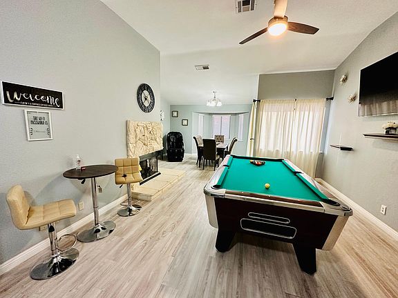 Welcome to our fully remodeled and furnished single story house with 3 bedrooms, 2 full bathrooms, patio and huge backyard. Full of amenities and new appliances. The master bedroom comes with a king size bed and a walk-in closet. Two guest bedrooms each has a queen size bed. Living room, family room and each bedroom comes with a 55" Smart TV. Living room with Pool Table and Zero gravity massage chair. Family room with reclining sofa. Quiet neighborhood with perfect location. Minutes from LV strip and airport. Close to restaurants and shopping, and lots more to see and do. Tenant pays water, gas, electricity and internet. Landlord pays trash and sewer. 1 month to 1 year options are available: 1-year lease: $2800 6-month lease: $3000 3-month lease: $3200 Month-to-month lease: $3700 with internet and utilities included $400 cap on water, electricity and gas. Pet fee is $300 one-time, non-refundable per pet. No smoking allowed inside.