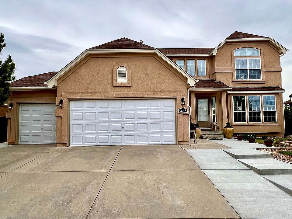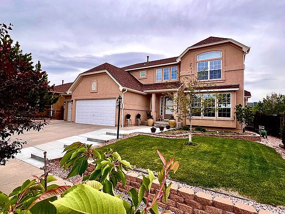 This fantastic home featuring breath-taking views of Pikes Peak is a show stopper! Located off the Powers corridor, this home is close to schools, restaurants, and shopping! As you enter the house, you are greeted with an open floor plan, perfect for entertaining! Featuring an abundance of natural lighting emanating from full-size windows, this home is bright and airy, even on the darkest of days. The gourmet kitchen features new stainless steel appliances, and a large island perfect for food preparation and eating. A beautiful Great Room off the kitchen is accented with a fireplace, perfect for cozying up to on the cold Colorado nights. The Master Bedroom Suite is rounded out with walk-in closets, vaulted ceilings, and a 5-piece Master Bath, and also boasts views of Pikes Peak. Two additional bedrooms round out the upper level. The basement features another bedroom and bathroom, and another fireplace for cozy Colorado nights. The floor of the three car garage has been epoxy coated.