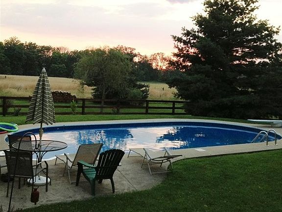 Gorgeous property & well maintained home on almost 5 acres! Beautiful setting outback on your deck & paver patio! LG in-ground pool, partial fenced yrd, huge barn w/ electric & workshop/studio + 1 stall & coop! New: fence, bdrm carpet, HWH, SS apps.