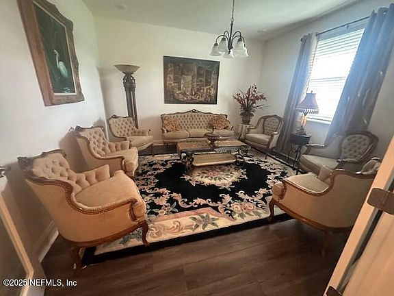 This home is located in Nassau County situated on a 1 plus-acre lot adjacent to a nature reserve area and no backyard neighbors and conveniently located to US Routes 1 and 301 and Interstate 95 and just 10 miles from retail stores and restaurants, 15 miles to Jacksonville International Airport, 20 miles to Amelia Island, 23 miles to Naval Submarine Base Kings Bay. The listing price on this home is based on Comps nearby of $643,500 to $847,400 and on improvements and upgrades such as Wi-Fi video doorbell with camera, speaker, microphone and motion sensor phone app, front door key or code entry deadbolt, water softener with filtration system, custom lights and ceiling fans, windows with modern curtains and custom blinds, seamless gutters, privacy fenced backyard with an extended (35x40) paver patio for relaxing and entertaining, Hot Spring six person Jacuzzi-Spa, a fire pit and Gazebo for outside cooking, and Poly-aspartic floor coating on the patio and garage floors. Landscaping flowers and shrubs, crape myrtle, bottlebrush, olive, mulberry, and lemon, lime, grapefruit, and fig trees, and a bonus with your purchase of this home, we also provide you with a Riding Lawn Mower. This home is designed for seamless entertaining and family gatherings. The exterior features a charming covered front porch with stone accents, enhancing the home's curb appeal. An inviting grand foyer entryway welcomes you into the open concept living space with 11-foot-high tray ceilings, crown molding, Pergo Timbercraft laminate flooring, 6-inch baseboards, carpet in the bedrooms and amazing natural light penetrating Energy-efficient windows. A spacious split floor plan featuring 4-bedrooms (three of the four bedrooms have walk-in closets), 3-full bathrooms (two have a large luxury shower, overhead rainfall and glass enclosure, one with a tub) and the master bedroom is a serene oasis with two walk-in closets, an elaborate ensuite master bathroom with a large luxury shower, overhead rainfall and glass enclosure, double vanities cabinetry with lustrous countertop that gleam with polished chrome fixtures. This incredible home includes a great room, spectacular formal dining room, a living room/office and a glamorous gourmet well designed chef's kitchen with double oven, plenty of counter and cabinet space with bar-top seating, combining style and functionality with fine quality white bespoke cabinetry, and stainless-steel built-in appliances. At the center is the chef's kitchen, open to an inviting great room with sliding glass doors leading to a generous 10x40 screened lanai seamlessly integrated overlooking the huge rear fenced yard making it ideal for entertaining and backyard farming, growing your own delicious, organic fruits, vegetables and meats for your family. This home has a 3-car side entry garage with storage shelves, exterior security lights and irrigation system. Water source is a private well. Shown by appointment Only.