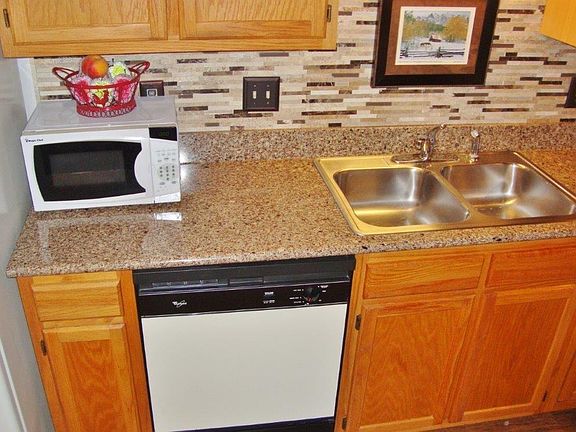 Impressive 2bdrm condo on 2nd floor with vaulted ceilings-open floor plan. Quartz counter tops and tile back splash in the kitchen. Vinyl plank flooring in the kitchen and the MBR. Newer carpet in the living room and hall. HWH-2 years old, fresh paint-Home warranty in place.