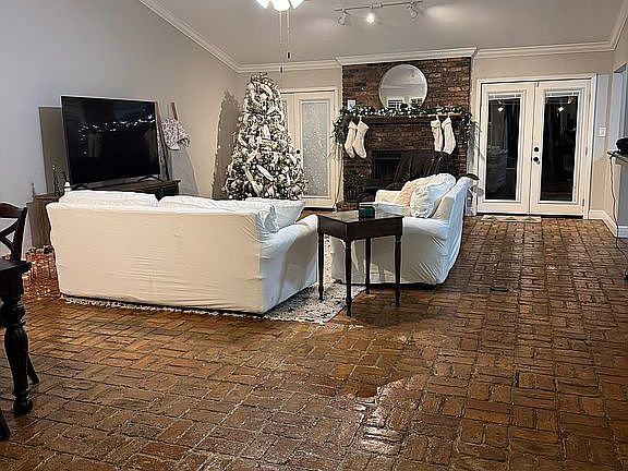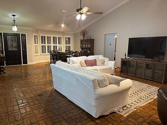 Built in 1989 and thoughtfully remodeled in 2010, the home features original brick flooring throughout the main living areas, adding warmth and character. All bathrooms are finished with tile flooring, while the bedrooms and office offer durable laminate flooring. The spacious primary suite includes walk-in closets and a private bath, creating a relaxing retreat.