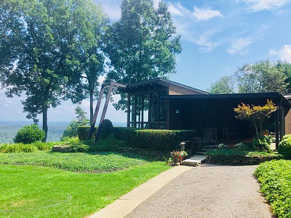 Very attractive California contemporary ranch. Architecturally designed according to the principals of the Frank Lloyd Wright design - Great room w/wood burning fireplace of local field stone, sweeping views, lush landscaping, gazebo ,low taxes and 12 acres you will fall in love with!