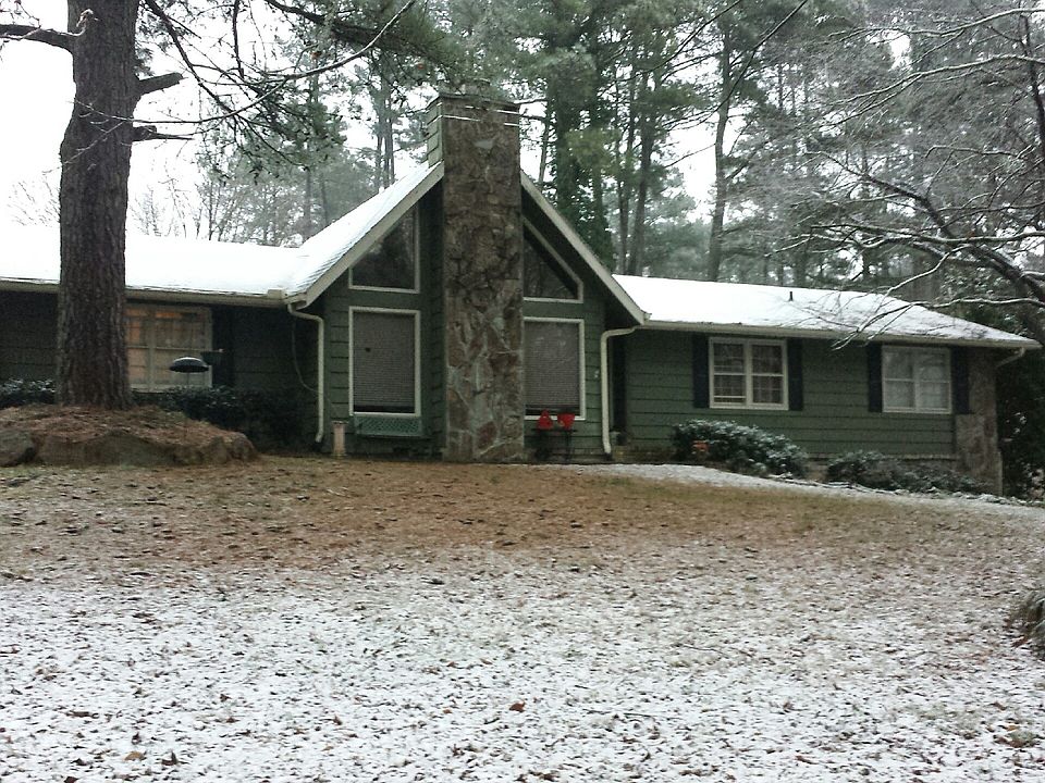 Quiet Neighborhood with E-Z commute to 985,85 and 400. Rustic Ranch;Cathedral Vaulted Ceiling,Great Rm,Stone Fireplace,Windows Abound;New Kitchen cabinets and backsplash with bay window breakfast area,spacious master bedroom,walk-in closet and master bath with neutral tiled shower;3 additional bedrooms;screened-in porch plus cooking deck;partial basement ready to be finished as playroom,media room and storage.