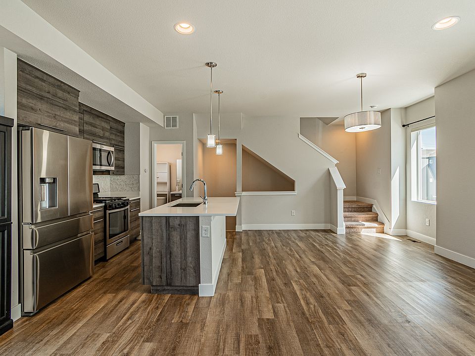 Stunning 3BD 3.5BA Newer Build Townhome Close to Lakewood Country Club - Upon entering the home, you will find gorgeous hardwood-style floors, high ceilings, a high-end kitchen with brand new, stylish tile backsplash, and a private balcony off the living room. Upstairs you will find a guest bedroom and a spacious master with a walk-in closet. The downstairs bedroom thats perfect to be a small bedroom or an office includes an en-suite bathroom and large oversized closet! Downstairs bedroom also has access to the private back patio. This home is full of modern updates including a newly updated HVAC system with a built-in air purification system that cleans the air in the entire home, hard-wired internet connectivity (great for remote work) and a high-end Electrolux washer and dryer. The attached, single-car garage includes several storage built-ins including a snowboard rack, overhead storage, and a custom workbench. There is an additional parking spot in front of the unit. Easy access to many shopping and dining options. 8 min walk to the Sheridan W line Station, 8 min walk to the Lakewood Dry Gulch Trail, 5 min drive to Sloans lake. UTILITY POLICY: *$50 monthly fee covering water/sewer/trash/snow removal, landscaping Tenant pays $50 monthly utility fee covering water/sewer/trash/snow removal, landscaping. Tenant pays for Xcel (electric and gas), and internet (Xfinity and Century Link are both available for the unit)